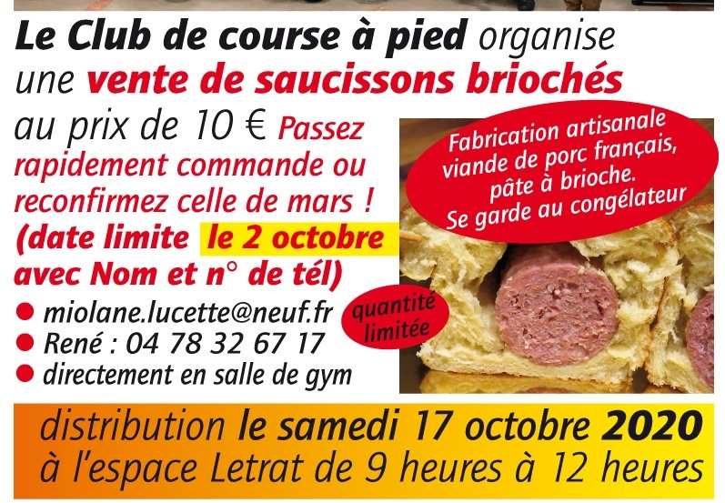 Le club de course à pied organuse une vente de saucissions briochés au prix de 10€